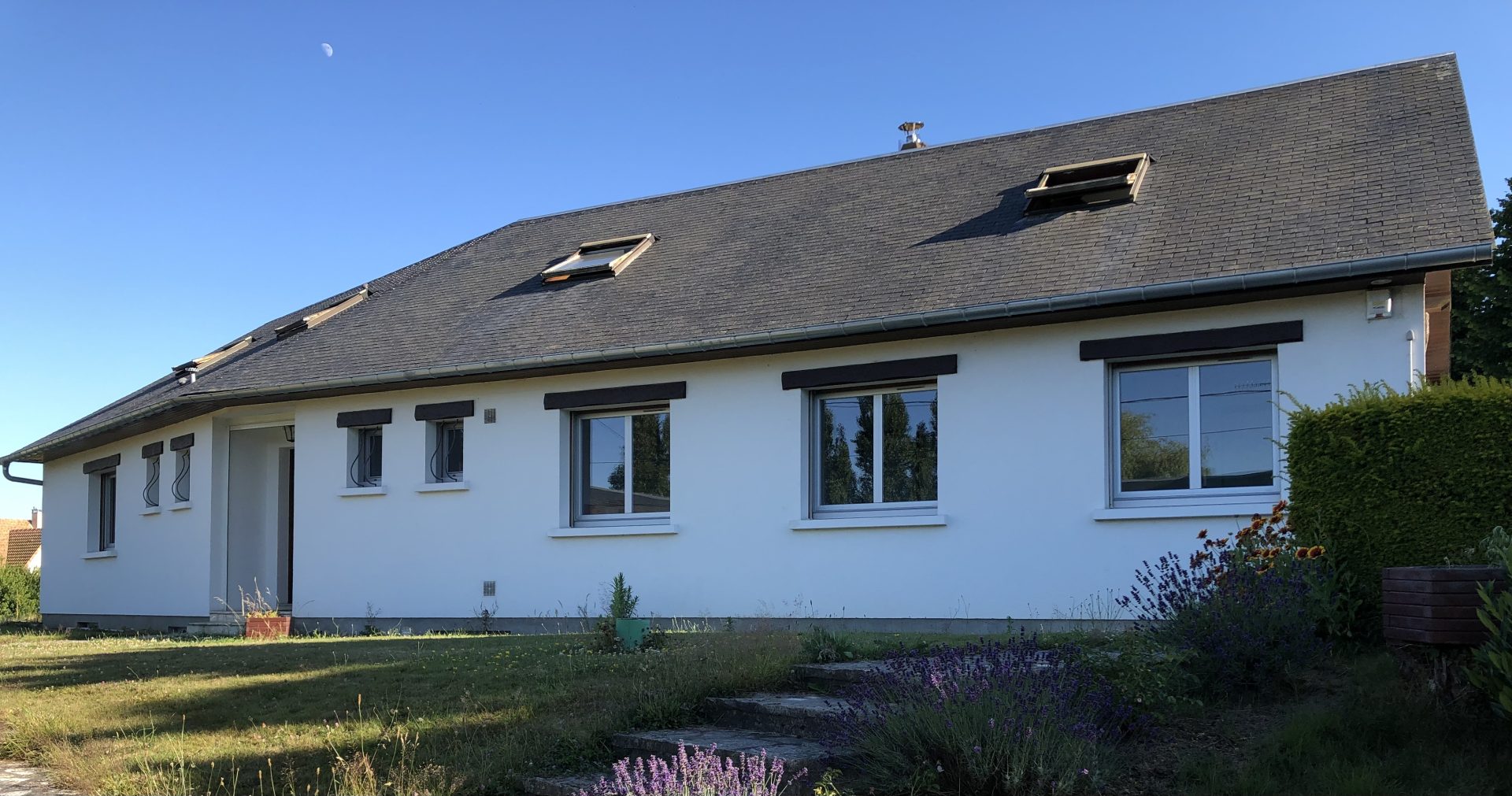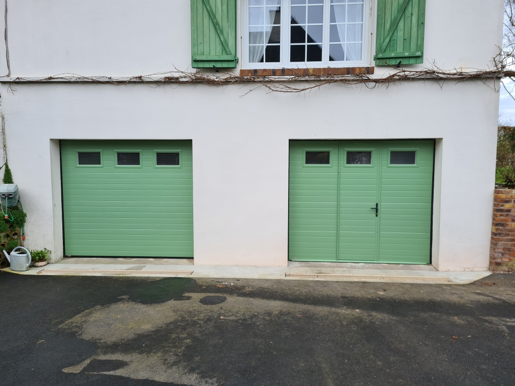 Pose de 2 portes de garage motorisées avec hublots dont une avec portillon intégré