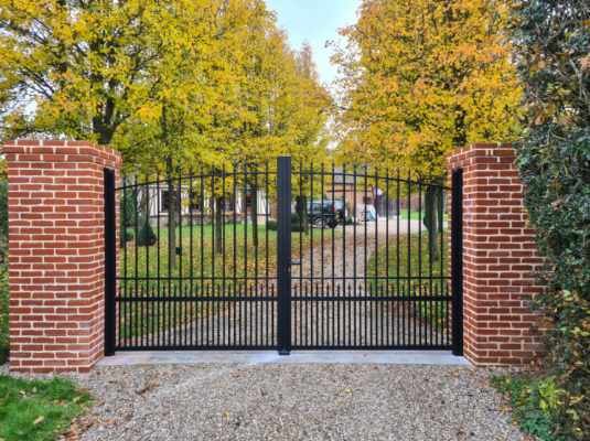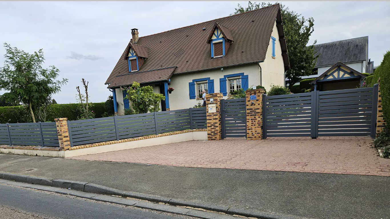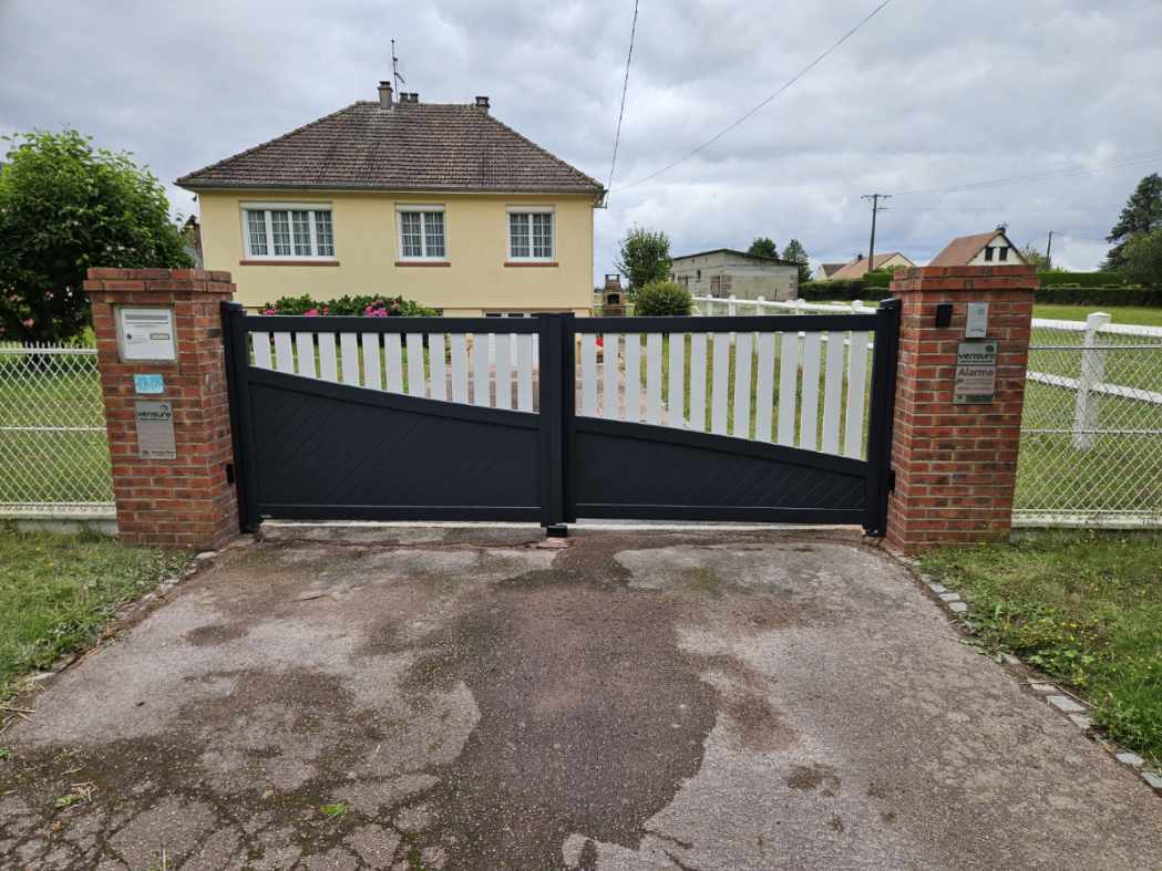 Pose d'un portillon, d'un portail battant et de clôtures en aluminium, avec automatisme à bras Somfy