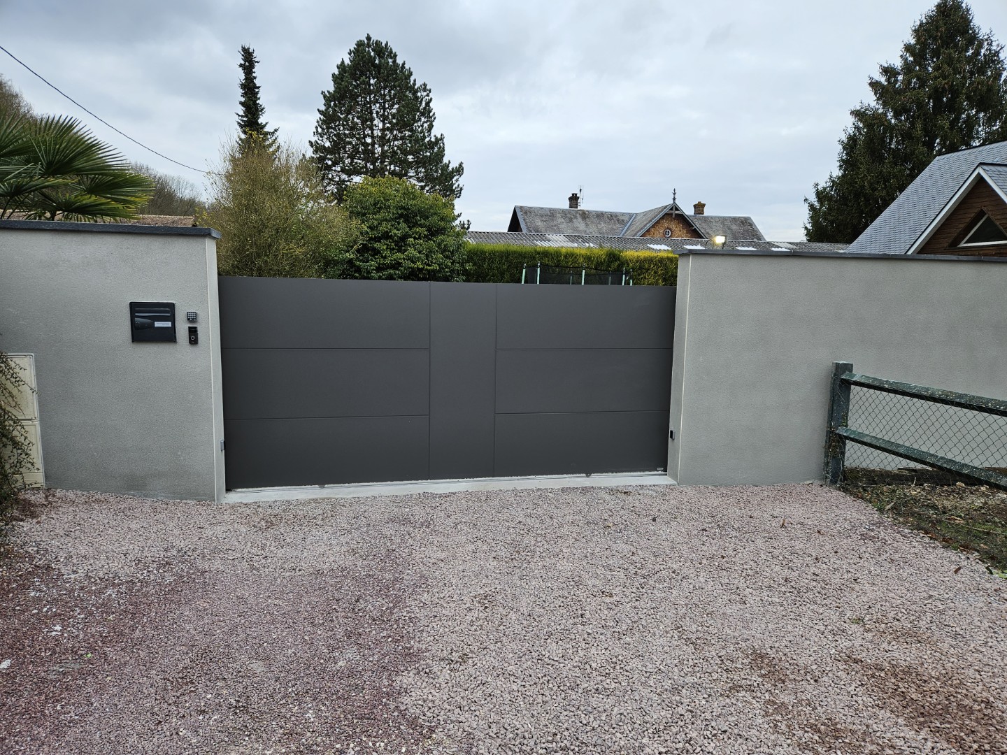 Pose d'un portail coulissant en aluminium, avec automatisme, digicode et visiophone Somfy