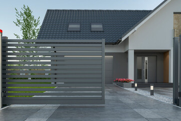 Pose d'un portillon, d'un portail battant et de clôtures en aluminium, avec automatisme à bras Somfy